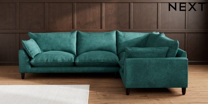 7.3.1 Buy Noa Deep Relaxed Sit Large Corner Sofa - Right Hand Plush Chenille Dark Teal Green High Leg - Dark from the Seasons online shop Click here to use our website with more accessibility support, for example screen readers