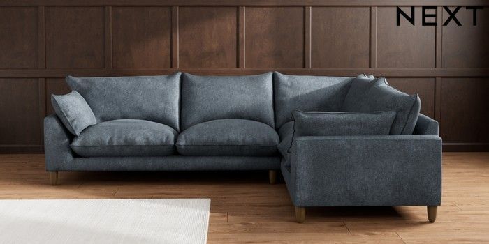 7.2.10 Buy Noa Deep Relaxed Sit Large Corner Sofa - Right Hand Plush Chenille Slate Blue High Leg - Mid from the Seasons online shop Click here to use our website with more accessibility support, for example screen readers