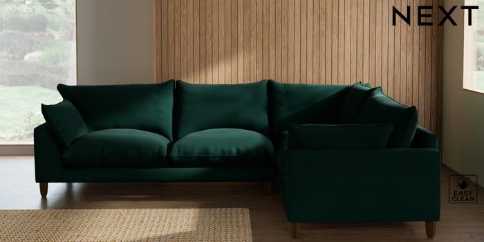 7.3.1 Buy Noa Deep Relaxed Sit Large Corner Sofa - Right Hand Plush Velvet Easy Clean Bottle Green High Leg - Mid from the Seasons online shop Click here to use our website with more accessibility support, for example screen readers