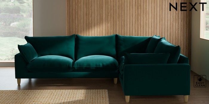 7.3.1 Buy Noa Deep Relaxed Sit Large Corner Sofa - Right Hand Plush Velvet Easy Clean Juniper Green High Leg - Light from the Seasons online shop Click here to use our website with more accessibility support, for example screen readers