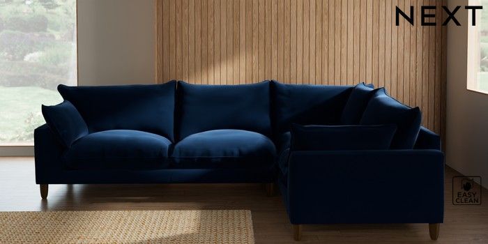 7.3.1 Buy Noa Deep Relaxed Sit Large Corner Sofa - Right Hand Plush Velvet Easy Clean Navy Blue High Leg - Mid from the Seasons online shop Click here to use our website with more accessibility support, for example screen readers