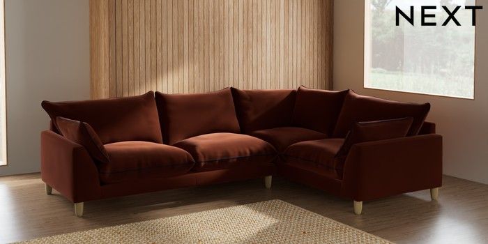 7.3.1 Buy Noa Deep Relaxed Sit Large Corner Sofa - Right Hand Plush Velvet with Contrast Ginger Orange with Navy Blue High Leg - Light from the Seasons online shop Click here to use our website with more accessibility support, for example screen readers