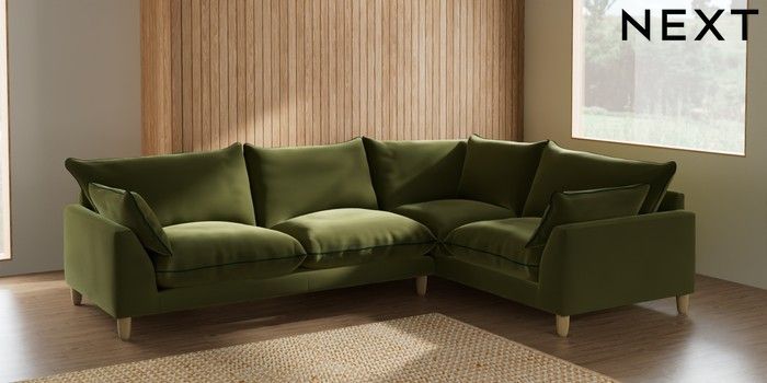 7.3.1 Buy Noa Deep Relaxed Sit Large Corner Sofa - Right Hand Plush Velvet with Contrast Mid Olive Grn with Bottle Grn High Leg - Light from the Seasons online shop Click here to use our website with more accessibility support, for example screen readers