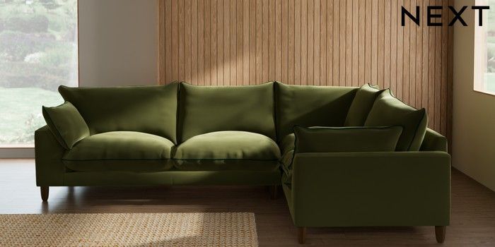 7.3.1 Buy Noa Deep Relaxed Sit Large Corner Sofa - Right Hand Plush Velvet with Contrast Mid Olive Grn with Bottle Grn High Leg - Mid from the Seasons online shop Click here to use our website with more accessibility support, for example screen readers
