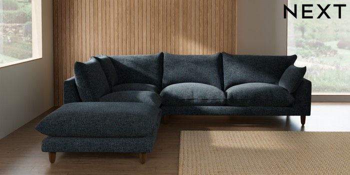 7.3.1 Buy Noa Deep Relaxed Sit Large Open End Corner Chaise - Left Hand Chunky Chenille Dark Navy Blue High Leg - Mid from the Seasons online shop Click here to use our website with more accessibility support, for example screen readers