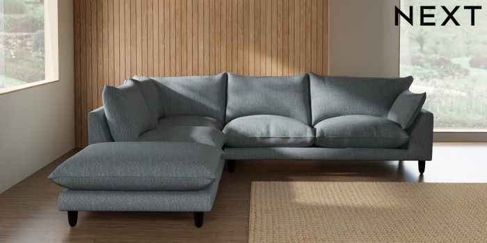 7.2.10 Buy Noa Deep Relaxed Sit Large Open End Corner Chaise - Left Hand Chunky Weave Mid Blue High Leg - Dark from the Seasons online shop Click here to use our website with more accessibility support, for example screen readers