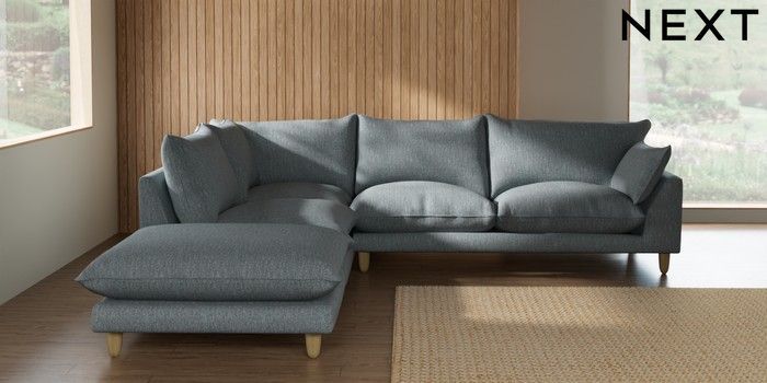 7.2.10 Buy Noa Deep Relaxed Sit Large Open End Corner Chaise - Left Hand Chunky Weave Mid Blue High Leg - Light from the Seasons online shop Click here to use our website with more accessibility support, for example screen readers