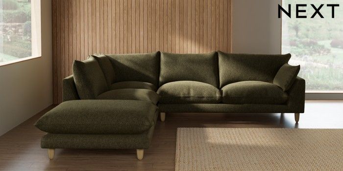 7.3.1 Buy Noa Deep Relaxed Sit Large Open End Corner Chaise - Left Hand Cotswold Chenille Dark Green High Leg - Light from the Seasons online shop Click here to use our website with more accessibility support, for example screen readers