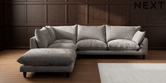 7.3.1 Buy Noa Deep Relaxed Sit Large Open End Corner Chaise - Left Hand Distressed Velour French Grey High Leg - Dark from the Seasons online shop Click here to use our website with more accessibility support, for example screen readers