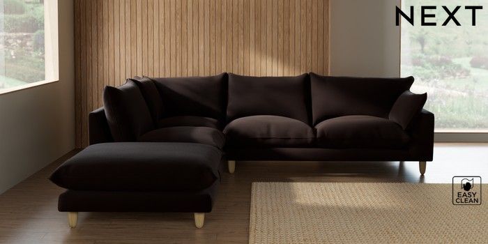 7.3.1 Buy Noa Deep Relaxed Sit Large Open End Corner Chaise - Left Hand Fine Chenille Easy Clean Chocolate Brown High Leg - Light from the Seasons online shop Click here to use our website with more accessibility support, for example screen readers