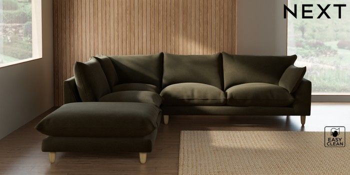 7.3.1 Buy Noa Deep Relaxed Sit Large Open End Corner Chaise - Left Hand Fine Chenille Easy Clean Dark Moss Green High Leg - Light from the Seasons online shop Click here to use our website with more accessibility support, for example screen readers