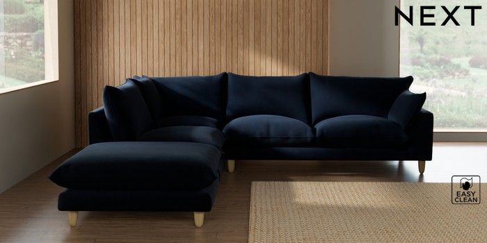 7.3.1 Buy Noa Deep Relaxed Sit Large Open End Corner Chaise - Left Hand Fine Chenille Easy Clean Dark Navy Blue High Leg - Light from the Seasons online shop Click here to use our website with more accessibility support, for example screen readers