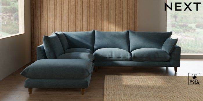 7.2.10 Buy Noa Deep Relaxed Sit Large Open End Corner Chaise - Left Hand Fine Chenille Easy Clean Mid Blue High Leg - Mid from the Seasons online shop Click here to use our website with more accessibility support, for example screen readers