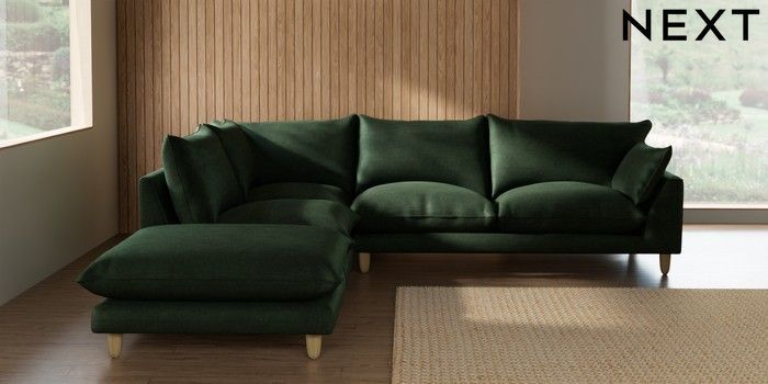 7.2.10 Buy Noa Deep Relaxed Sit Large Open End Corner Chaise - Left Hand Luxe Chenille Dark Green High Leg - Light from the Seasons online shop Click here to use our website with more accessibility support, for example screen readers