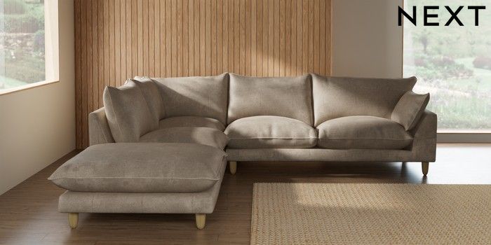 7.2.10 Buy Noa Deep Relaxed Sit Large Open End Corner Chaise - Left Hand Plush Chenille Light Natural High Leg - Light from the Seasons online shop Click here to use our website with more accessibility support, for example screen readers