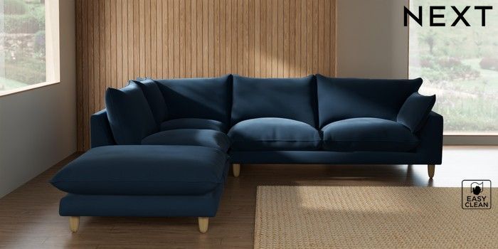 7.3.1 Buy Noa Deep Relaxed Sit Large Open End Corner Chaise - Left Hand Plush Velvet Easy Clean Airforce Blue High Leg - Light from the Seasons online shop Click here to use our website with more accessibility support, for example screen readers