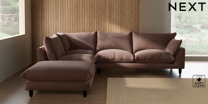 7.3.1 Buy Noa Deep Relaxed Sit Large Open End Corner Chaise - Left Hand Plush Velvet Easy Clean Mid Natural High Leg - Dark from the Seasons online shop Click here to use our website with more accessibility support, for example screen readers