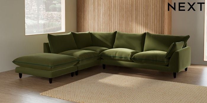 7.3.1 Buy Noa Deep Relaxed Sit Large Open End Corner Chaise - Left Hand Plush Velvet with Contrast Mid Olive Grn with Juniper Grn High Leg - Dark from the Seasons online shop Click here to use our website with more accessibility support, for example screen readers