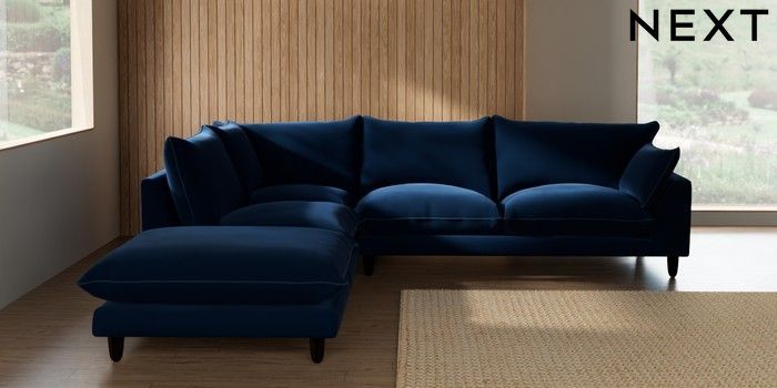 7.3.1 Buy Noa Deep Relaxed Sit Large Open End Corner Chaise - Left Hand Plush Velvet with Contrast Navy Blue with Airforce Blue High Leg - Dark from the Seasons online shop Click here to use our website with more accessibility support, for example screen readers