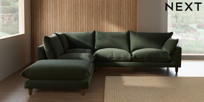7.3.1 Buy Noa Deep Relaxed Sit Large Open End Corner Chaise - Left Hand Relaxed Linen Look Dark Green High Leg - Mid from the Seasons online shop Click here to use our website with more accessibility support, for example screen readers