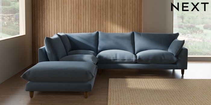 7.3.1 Buy Noa Deep Relaxed Sit Large Open End Corner Chaise - Left Hand Relaxed Linen Look Mid Blue High Leg - Mid from the Seasons online shop Click here to use our website with more accessibility support, for example screen readers