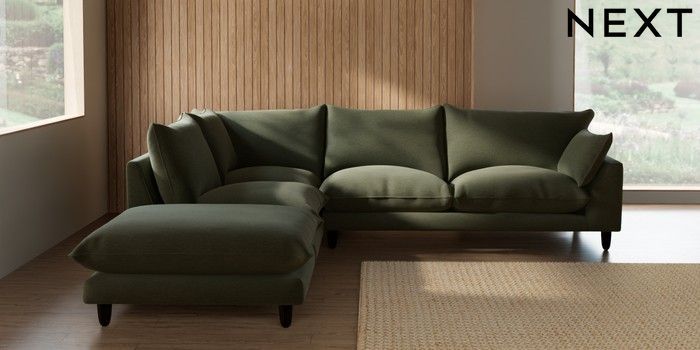 7.3.1 Buy Noa Deep Relaxed Sit Large Open End Corner Chaise - Left Hand Ripple Chenille Mid Moss Green High Leg - Dark from the Seasons online shop Click here to use our website with more accessibility support, for example screen readers