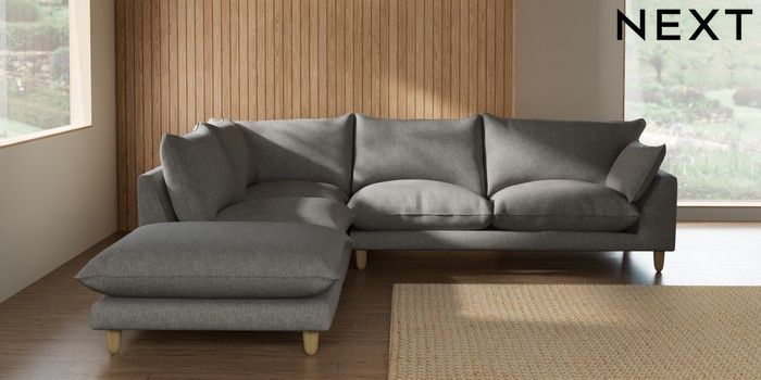 7.2.10 Buy Noa Deep Relaxed Sit Large Open End Corner Chaise - Left Hand Tweedy Chenille Mid Grey High Leg - Light from the Seasons online shop Click here to use our website with more accessibility support, for example screen readers