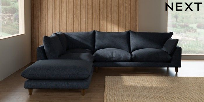 7.3.1 Buy Noa Deep Relaxed Sit Large Open End Corner Chaise - Left Hand Tweedy Chenille Navy Blue High Leg - Mid from the Seasons online shop Click here to use our website with more accessibility support, for example screen readers