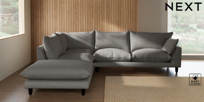 7.2.10 Buy Noa Deep Relaxed Sit Large Open End Corner Chaise - Left Hand Woven Chenille Easy Clean Light Grey High Leg - Dark from the Seasons online shop Click here to use our website with more accessibility support, for example screen readers