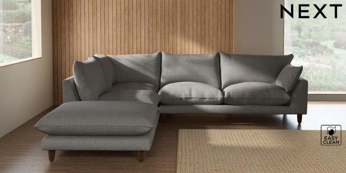 7.2.10 Buy Noa Deep Relaxed Sit Large Open End Corner Chaise - Left Hand Woven Chenille Easy Clean Light Grey High Leg - Mid from the Seasons online shop Click here to use our website with more accessibility support, for example screen readers