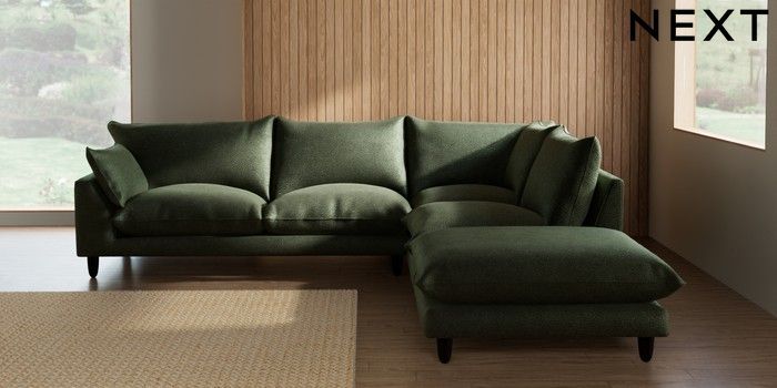7.3.1 Buy Noa Deep Relaxed Sit Large Open End Corner Chaise - Right Hand Boucle Chenille Dark Moss Green High Leg - Dark from the Seasons online shop Click here to use our website with more accessibility support, for example screen readers