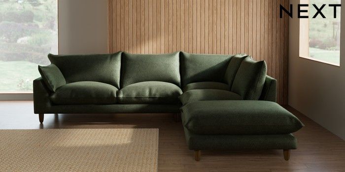 7.3.1 Buy Noa Deep Relaxed Sit Large Open End Corner Chaise - Right Hand Boucle Chenille Dark Moss Green High Leg - Mid from the Seasons online shop Click here to use our website with more accessibility support, for example screen readers