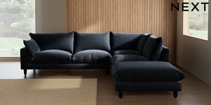 7.3.1 Buy Noa Deep Relaxed Sit Large Open End Corner Chaise - Right Hand Boucle Chenille Dark Slate Blue High Leg - Dark from the Seasons online shop Click here to use our website with more accessibility support, for example screen readers