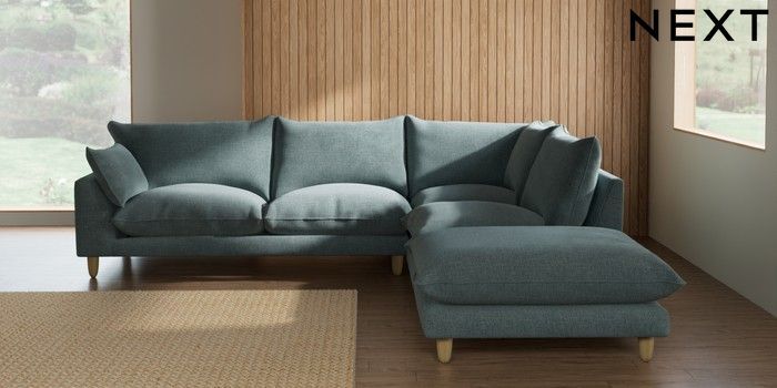 7.3.1 Buy Noa Deep Relaxed Sit Large Open End Corner Chaise - Right Hand Chunky Chenille Light Teal Green High Leg - Light from the Seasons online shop Click here to use our website with more accessibility support, for example screen readers