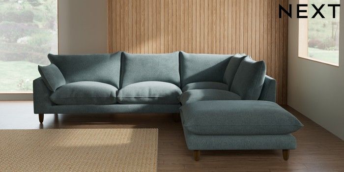 7.3.1 Buy Noa Deep Relaxed Sit Large Open End Corner Chaise - Right Hand Chunky Chenille Light Teal Green High Leg - Mid from the Seasons online shop Click here to use our website with more accessibility support, for example screen readers