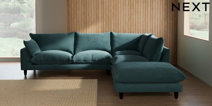 7.3.1 Buy Noa Deep Relaxed Sit Large Open End Corner Chaise - Right Hand Chunky Chenille Mid Teal Green High Leg - Dark from the Seasons online shop Click here to use our website with more accessibility support, for example screen readers