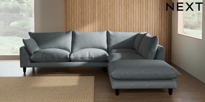 7.3.1 Buy Noa Deep Relaxed Sit Large Open End Corner Chaise - Right Hand Chunky Weave Mid Blue High Leg - Dark from the Seasons online shop Click here to use our website with more accessibility support, for example screen readers