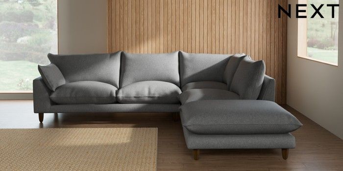 7.2.10 Buy Noa Deep Relaxed Sit Large Open End Corner Chaise - Right Hand Chunky Weave Mid Grey High Leg - Mid from the Seasons online shop Click here to use our website with more accessibility support, for example screen readers