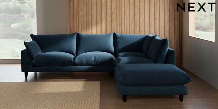 7.3.1 Buy Noa Deep Relaxed Sit Large Open End Corner Chaise - Right Hand Cotswold Chenille Dark Blue High Leg - Dark from the Seasons online shop Click here to use our website with more accessibility support, for example screen readers