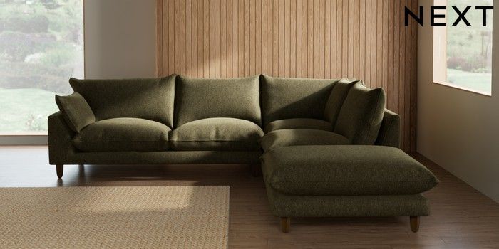 7.3.1 Buy Noa Deep Relaxed Sit Large Open End Corner Chaise - Right Hand Cotswold Chenille Dark Green High Leg - Mid from the Seasons online shop Click here to use our website with more accessibility support, for example screen readers
