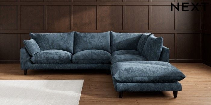 7.3.1 Buy Noa Deep Relaxed Sit Large Open End Corner Chaise - Right Hand Distressed Velour Midnight Blue High Leg - Dark from the Seasons online shop Click here to use our website with more accessibility support, for example screen readers