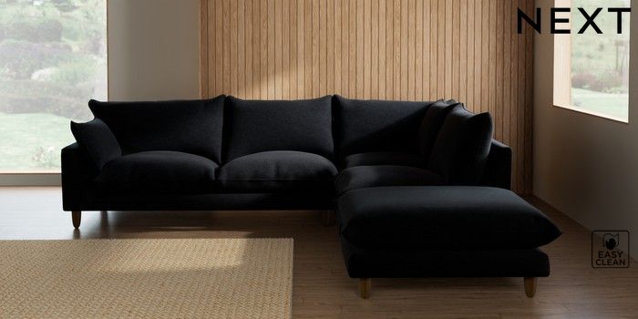 7.3.1 Buy Noa Deep Relaxed Sit Large Open End Corner Chaise - Right Hand Fine Chenille Easy Clean Black High Leg - Mid from the Seasons online shop Click here to use our website with more accessibility support, for example screen readers