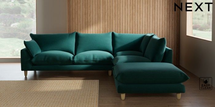 7.3.1 Buy Noa Deep Relaxed Sit Large Open End Corner Chaise - Right Hand Fine Chenille Easy Clean Dark Juniper Green High Leg - Light from the Seasons online shop Click here to use our website with more accessibility support, for example screen readers
