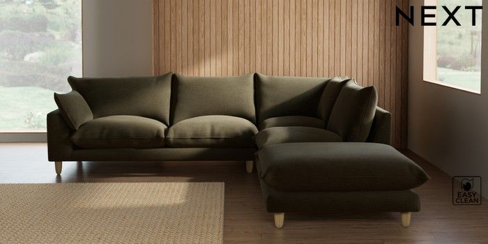 7.3.1 Buy Noa Deep Relaxed Sit Large Open End Corner Chaise - Right Hand Fine Chenille Easy Clean Dark Moss Green High Leg - Light from the Seasons online shop Click here to use our website with more accessibility support, for example screen readers