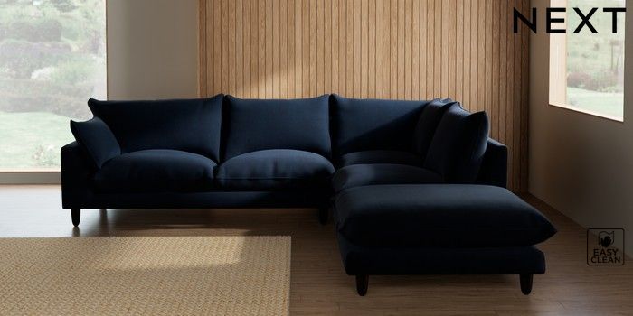 7.3.1 Buy Noa Deep Relaxed Sit Large Open End Corner Chaise - Right Hand Fine Chenille Easy Clean Dark Navy Blue High Leg - Dark from the Seasons online shop Click here to use our website with more accessibility support, for example screen readers