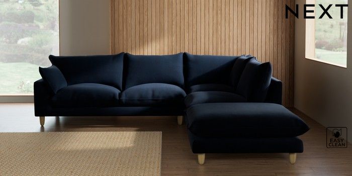 7.3.1 Buy Noa Deep Relaxed Sit Large Open End Corner Chaise - Right Hand Fine Chenille Easy Clean Dark Navy Blue High Leg - Light from the Seasons online shop Click here to use our website with more accessibility support, for example screen readers