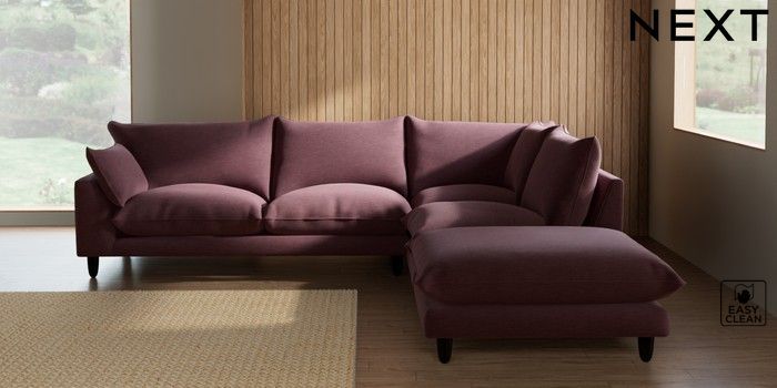 7.3.1 Buy Noa Deep Relaxed Sit Large Open End Corner Chaise - Right Hand Fine Chenille Easy Clean Mid Mulberry Purple High Leg - Dark from the Seasons online shop Click here to use our website with more accessibility support, for example screen readers