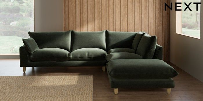 7.3.1 Buy Noa Deep Relaxed Sit Large Open End Corner Chaise - Right Hand Luxe Chenille Mid Green High Leg - Light from the Seasons online shop Click here to use our website with more accessibility support, for example screen readers