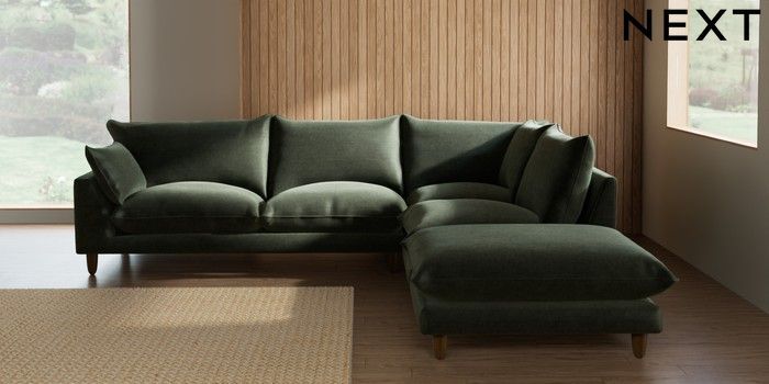 7.3.1 Buy Noa Deep Relaxed Sit Large Open End Corner Chaise - Right Hand Luxe Chenille Mid Green High Leg - Mid from the Seasons online shop Click here to use our website with more accessibility support, for example screen readers