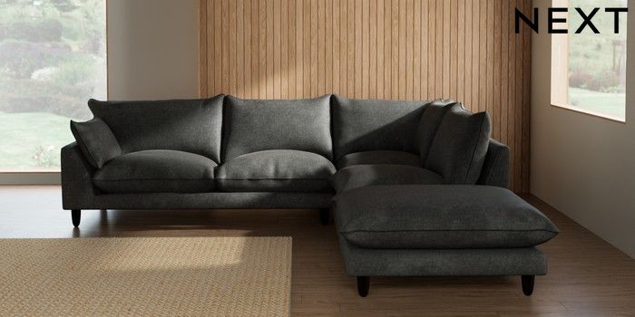 7.3.1 Buy Noa Deep Relaxed Sit Large Open End Corner Chaise - Right Hand Plush Chenille Dark Grey High Leg - Dark from the Seasons online shop Click here to use our website with more accessibility support, for example screen readers